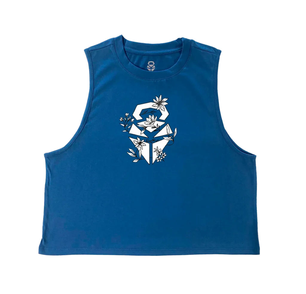Crop top azul en frisa de algodón, suave y cómodo, ideal para entrenamientos con estilo. Perfecto para moverte libremente y lucir fresca.